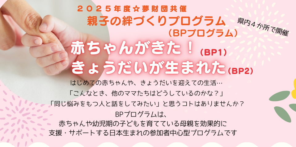 トップページ > 広島県・夢財団からのお知らせ > 【夢財団共催】2025年度 親子の絆づくりプログラム BP1、BP2 開催!